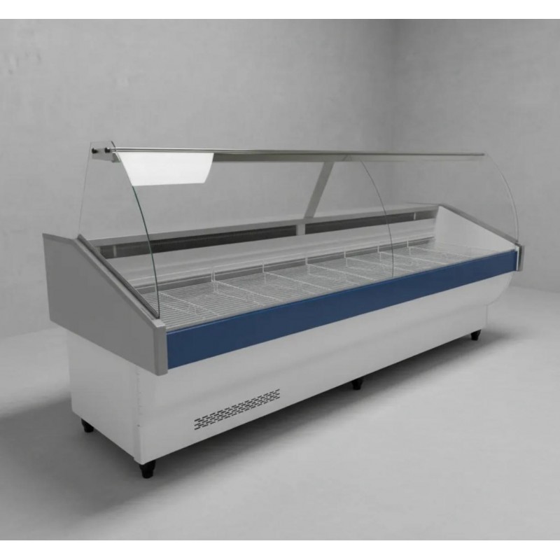 Totalmente inyectada en poliuretano. -Cúpula Vidrio Curvo o Recto 6 mm -Base en caño estructural. -Patas regulables en altura. -Piso interior en acero inoxidable. -Revestimiento exterior a elección, acero inox. o chapa PP blanca con frente superior color. -Semi Equipada con evaporador estático de 3 secciones dobles. -Rejillas reforzadas, plastificadas blancas. -Iluminación con tubo de led. -Mesa de trabajo y plafón en acero inox.